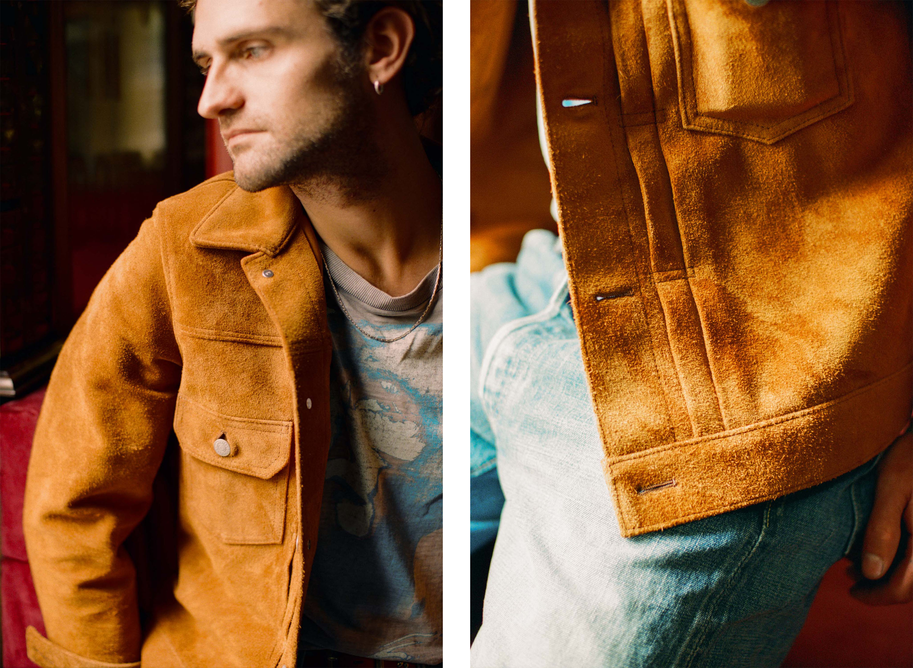 The TB-141 from Y'2 is their version the unmistakable 507 xx, Type II Jacket, Levi's 2nd style of jacket introduced in 1953. Using a fine Steer Roughout for the body of the jacket, the TB-141 has been produced with the same sewing techniques as seen on vintage denim jackets to enhance the puckering through the seams creating wonderful, subtle areas of character that run through each garment.