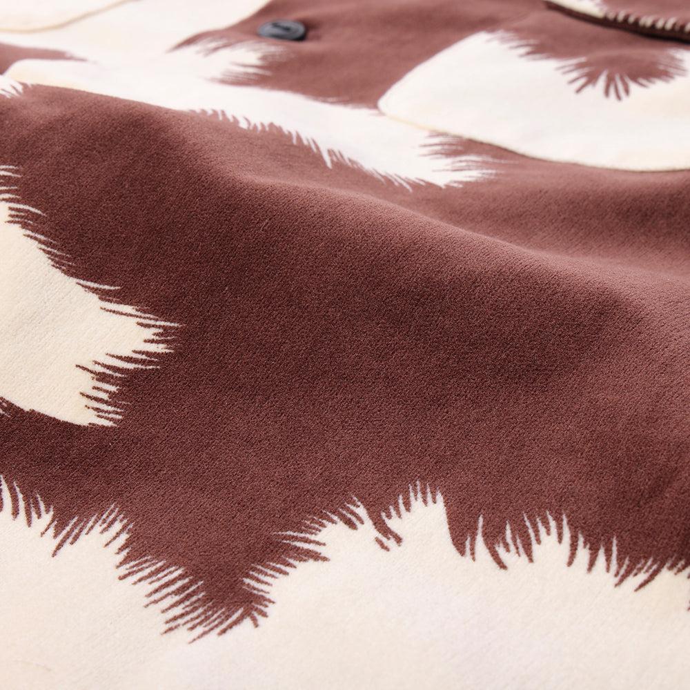 This classic Groovin High Flannel shirt is a faithful reproduction of the four-button silhouette made famous by a popular store brand in the early 1950's. Crafted from soft cotton flannel, it features a vintage-inspired animal print, combining heritage style with playful, retro detailing. 50's detailing features throughout with the classic open collar and two chest pockets w/flap closure.