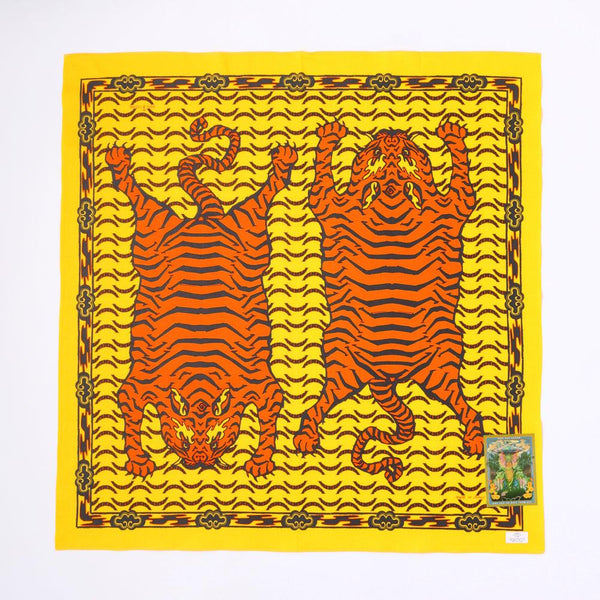Using custom made fabrics which took 10 years to develop, in a wide 90x90cm selvedge cotton, One Ear Bandannas are made entirely in Japan, printed one at a time meaning that each is slightly different from the last.