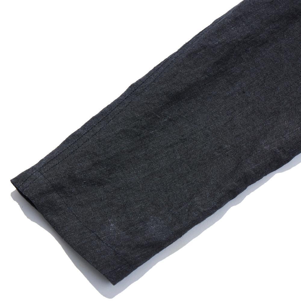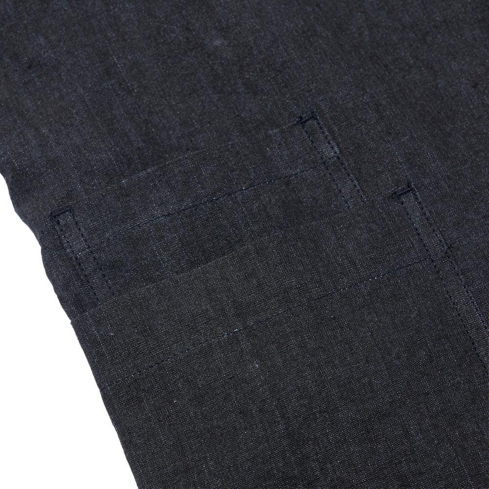 Cut in Japan from a salt shrunk linen canvas, using the Arimatsu Shibori method, where fabric is treated with a salt-condensed liquid to create a unique, textured, and durable fabric - ideal for this linen & this style of Jacket.