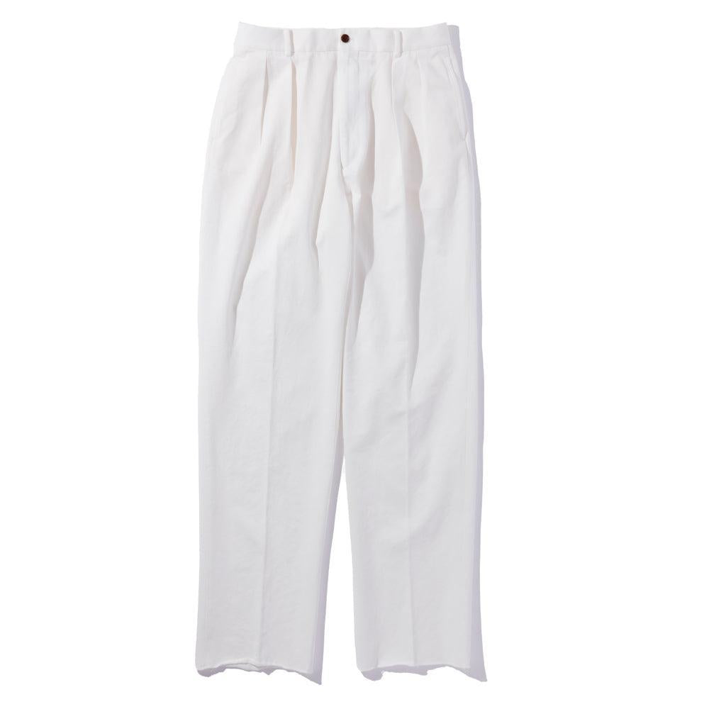 Cut in Japan from 100% cotton, the handle is incredibly soft while the fabric has been given a wash to give that laid back, easy going look. These feature a double pleated front giving ample room in the top block with a deep rise, while a gentle taper to the hem gives a bit of shape. Two side pockets & two rear double welted pockets with button closure & zip fly complete the look. Available in three colour-ways.
