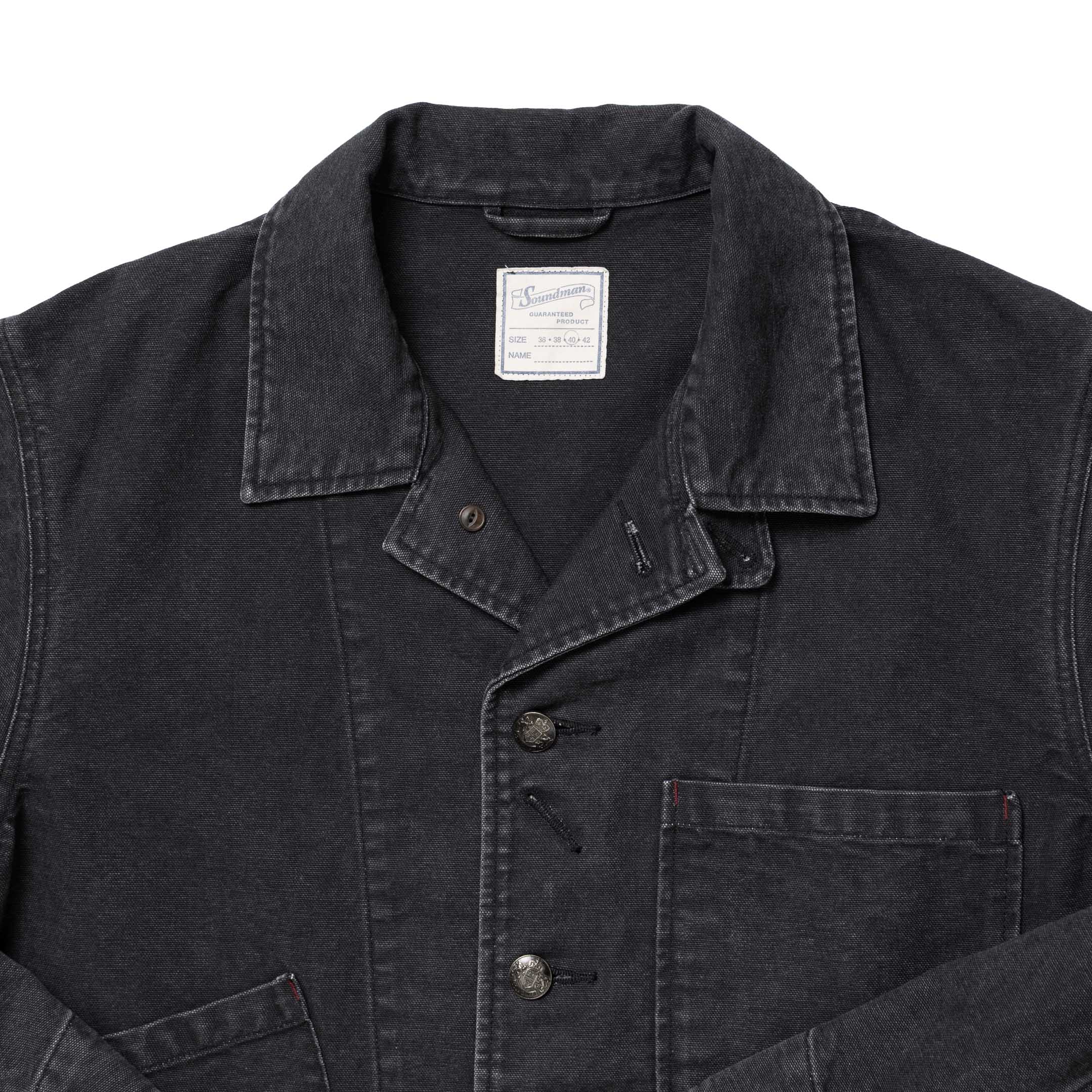 Elevated in design & fabric, the Eagle from Soundman is cut in Japan from 100% cotton, in a sulfur dyed duck canvas. The fit is quite boxy, allowing for ease of movement and layering, while it features a distinctive D-ticket pocket, two button flap pockets with integrated hand warmers, a single chest pocket and a practical chin warmer for added comfort. A button front has been paired with Soundman's signature buttons & stone washed for a worn-in, vintage look.