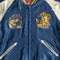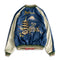 The roots of the Souvenir Jacket, or Sukajan in Japanese, can be traced back to American soldiers stationed in the Pacific following the end of World War II During the post-war occupation, American troops began using traditional Japanese designs and hand-stitching them into the backs of their jackets to commemorate their time in Japan Popular designs included Japanese (and Chinese) style dragons, cherry blossoms and trees Some would also opt for artwork that could have ranged from local maps to Geisha girls These pieces would often use rayon and silk